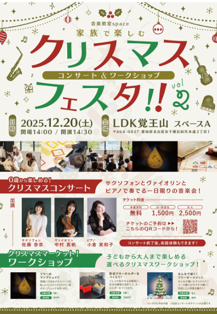 『家族で楽しむクリスマスフェスタ‼︎ vol.2』12月20日(土) 音楽教室space主催 ...続きを読む